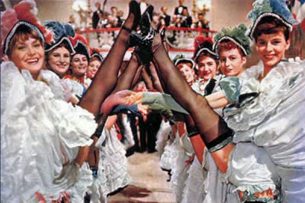 “French Cancan” uses one of the most familiar of musical formulas, loosely summarized as, “Hey, gang! Let’s rent the old barn and put on a show!” In this case he was inspired by the origins of the Moulin Rouge, the Montmartre cabaret theater which to this day still has success with the kinds of shows it opened with. It is a backstage story centering in the life of the (fictional) impresario Henri Danglard, a womanizer whose career was a series of narrow escapes from bankruptcy.