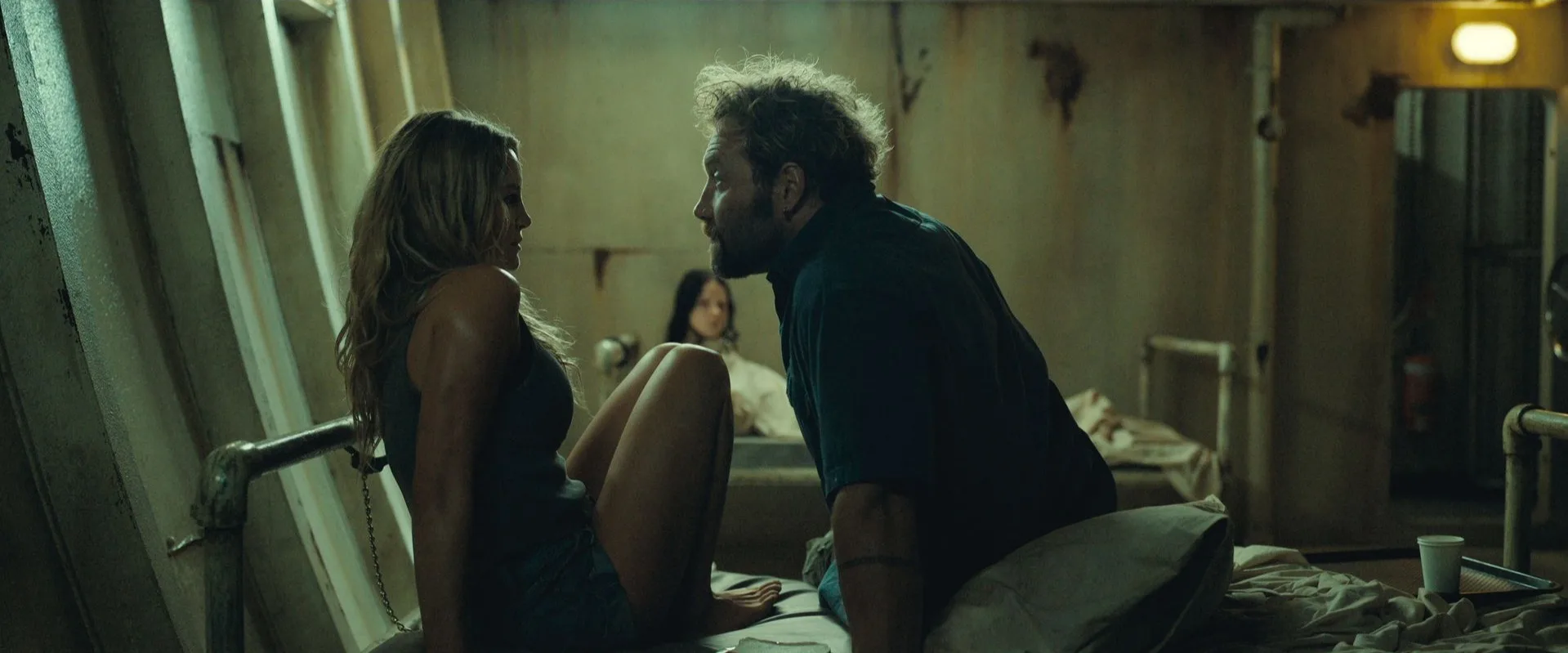 Given how extensively you storyboarded this, what kind of space did you leave yourself to rework or reconceptualize shots on set? Sharks aside, this is such a consistently strong film in terms of shot composition, blocking, and framing. Even that small shot of Zephyr, handcuffed to a bed, looking across at the ominous open handcuffs on the bed where her cellmate had been kept, is so haunting.
